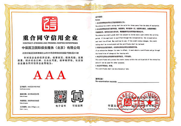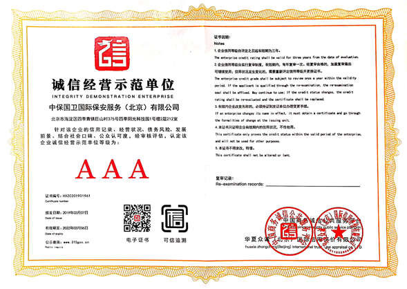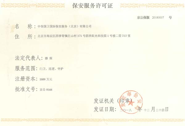 中保國(guó)衛(wèi)國(guó)際保安服務(wù)(北京)有限公司,屬中保國(guó)衛(wèi)集團(tuán)旗下子公司。能全方位的為大型客戶提供優(yōu)質(zhì)的安保、押運(yùn)服務(wù),是集人防和技防于一體的新型正規(guī)化綜合安保押運(yùn)服務(wù)企業(yè),提供人防、物防、技防、聯(lián)網(wǎng)報(bào)*、非武裝押運(yùn)等安防相關(guān)的一站式服務(wù)。 公司在國(guó)內(nèi)多省設(shè)立有分公司及分支機(jī)構(gòu),著重提升安全押運(yùn)、智能技術(shù)押運(yùn)及安全技術(shù)防范相關(guān)的服務(wù),業(yè)務(wù)范圍覆蓋全國(guó)一、二線城市、港澳地區(qū)以及海外地區(qū)。安保方面主要為政府機(jī)構(gòu)、金融機(jī)構(gòu)、企事業(yè)單位、醫(yī)療衛(wèi)生、高等院校、工業(yè)園區(qū)、大型商場(chǎng)、高檔住宅、智能商務(wù)樓、大型活動(dòng)提供門衛(wèi)、守護(hù)、巡邏、押運(yùn)(非武裝)、安全檢查、保安特勤、私人護(hù)衛(wèi)、消防中控、安全技術(shù)防范、遠(yuǎn)洋護(hù)航等全方位服務(wù),同時(shí)面向國(guó)際市場(chǎng),為中資企業(yè)在“一帶一路”沿線國(guó)家投資提供境外安保服務(wù)。 >> 更多內(nèi)容 |
